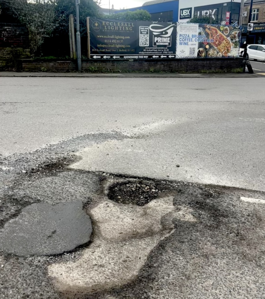 Drivers in areas such as Ecclesall and Hangingwater have reported significant road issues which threaten safety and tyre damage.